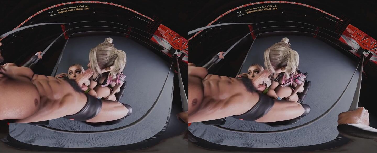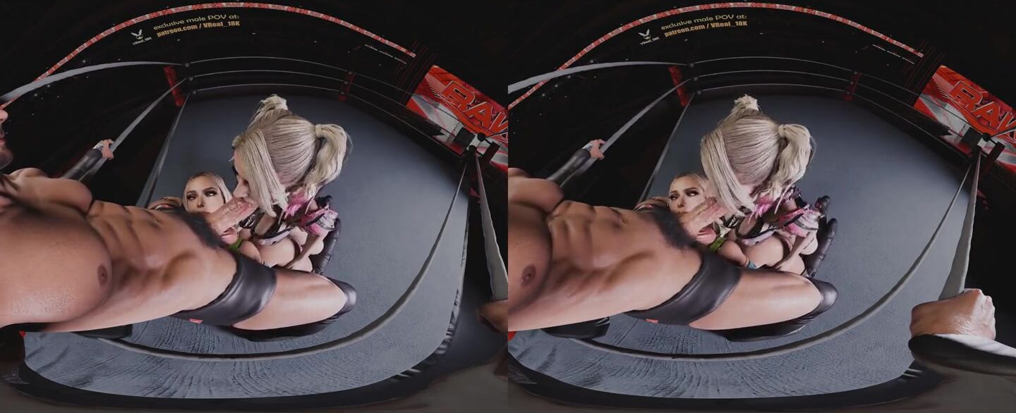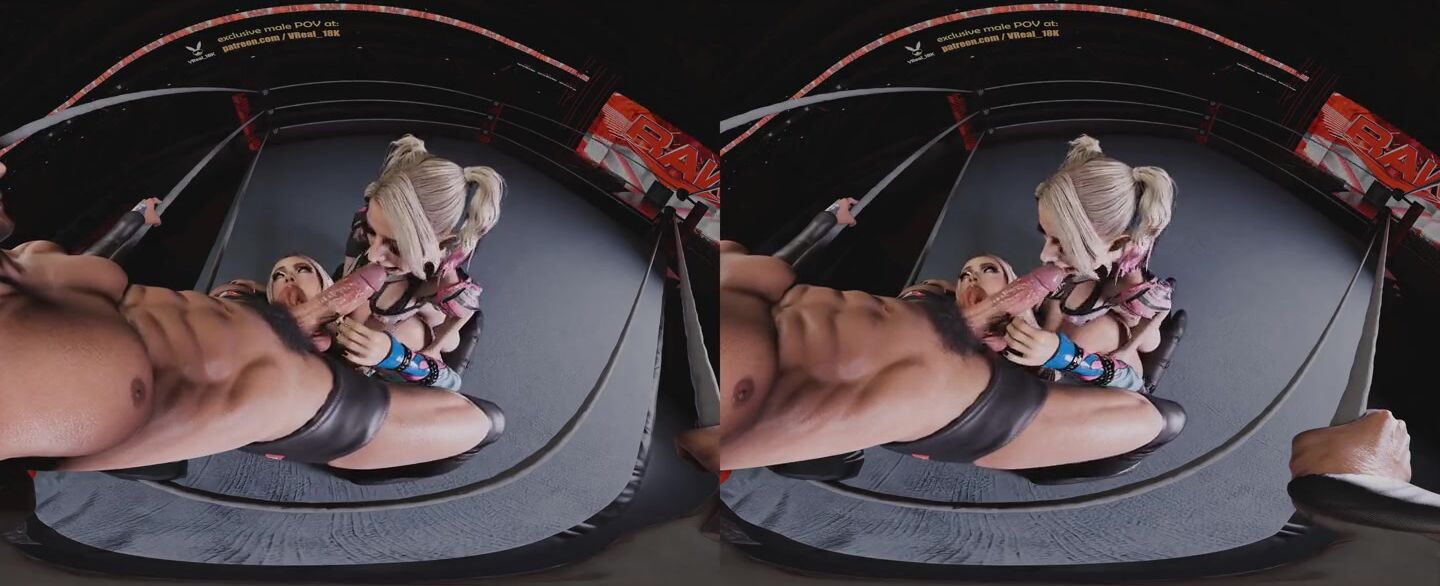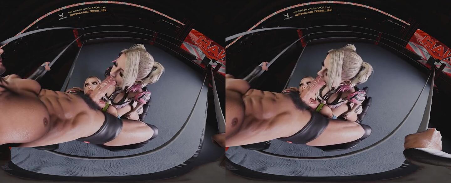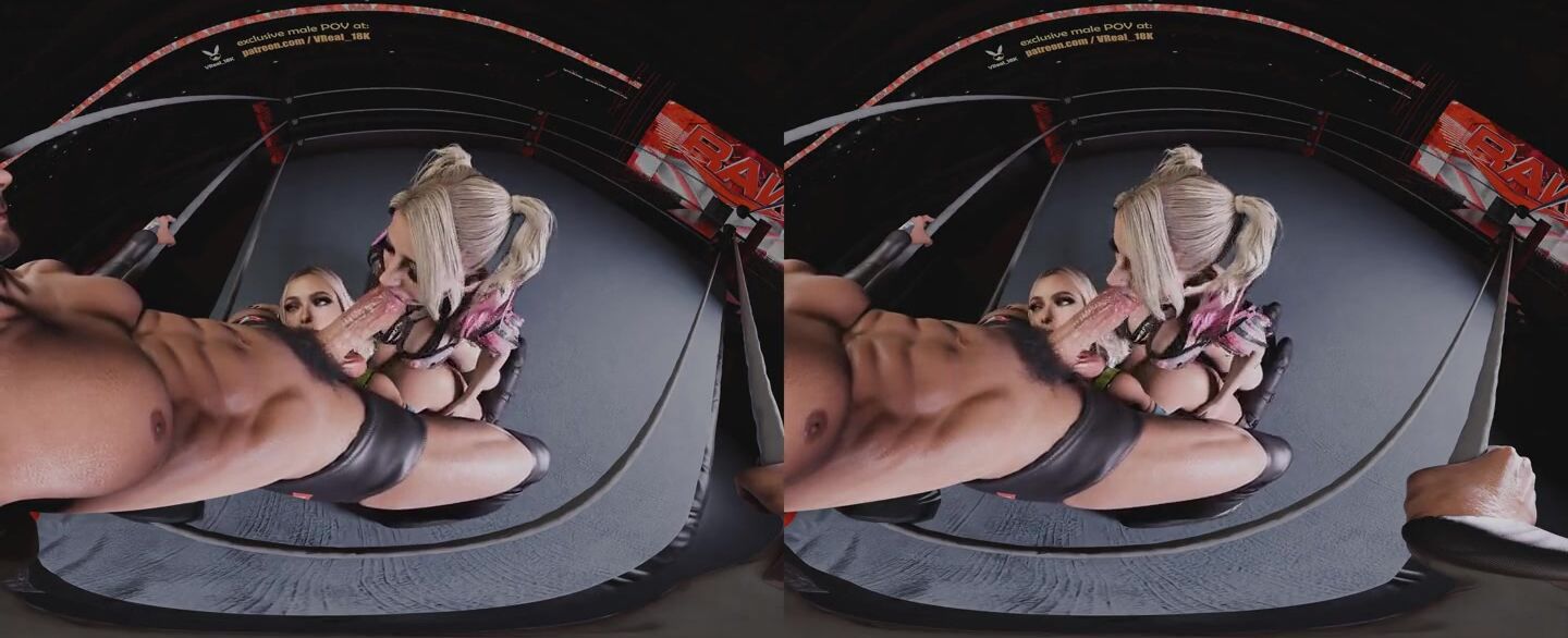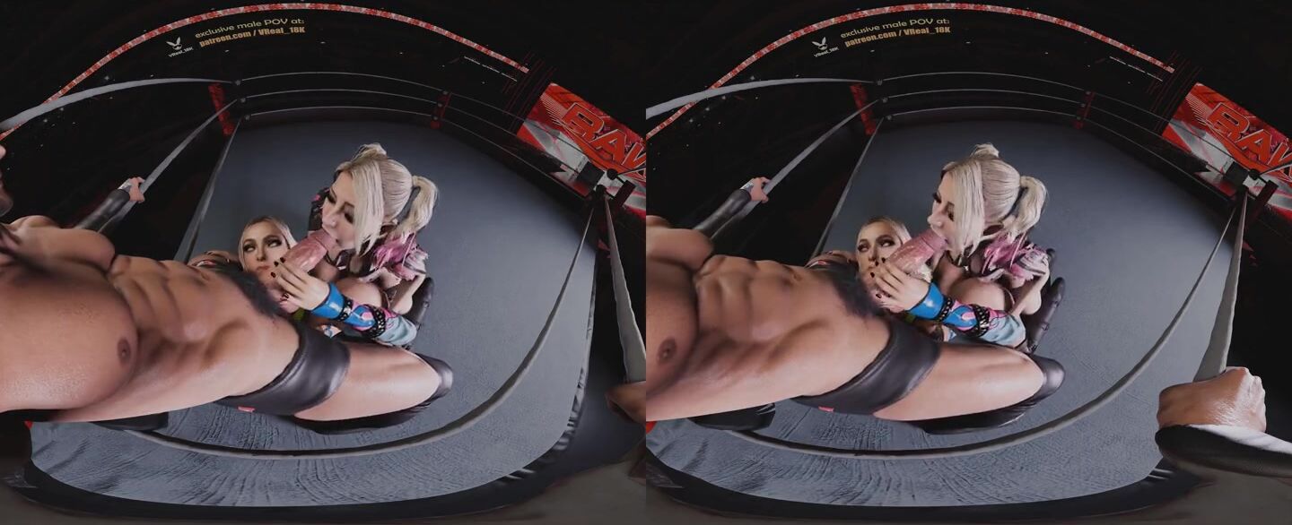 Spitroast Double Blowjob with Alexa Bliss dirty talking and using strapless strapon on Liv morgan (WWE 3D CGI render parody)