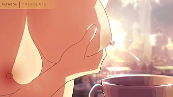 Squirting Milk, Lactating into a coffee cup Hentai Animation