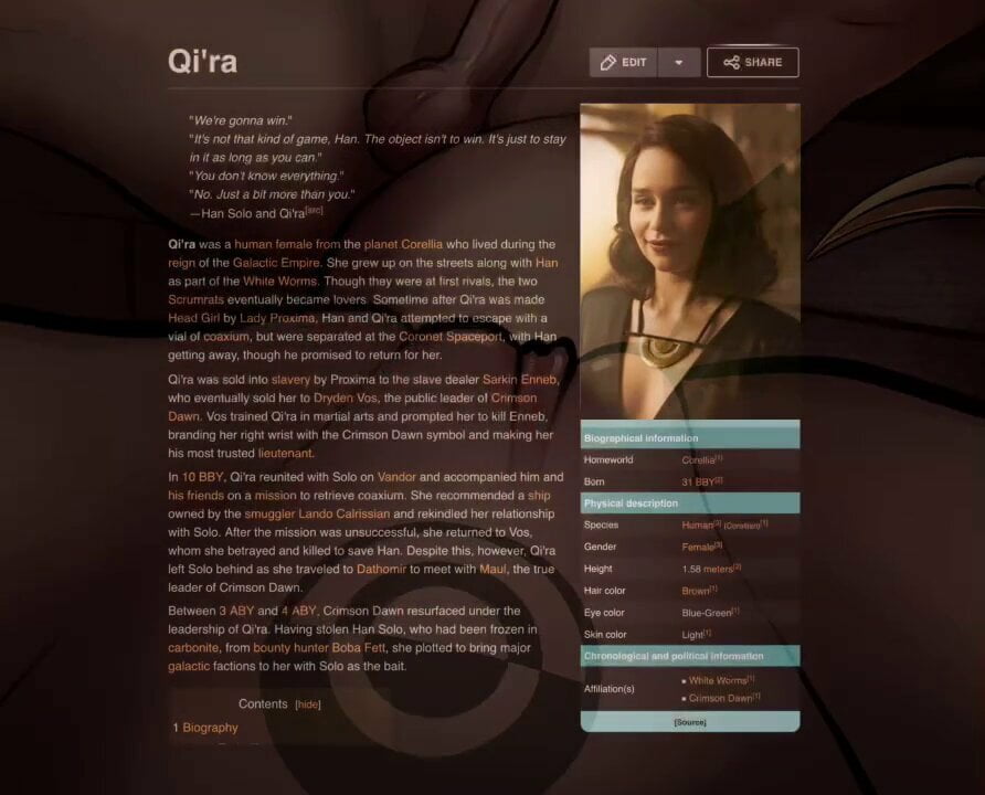 Star Wars Qira Spreading legs for Dryden Vos time lapse