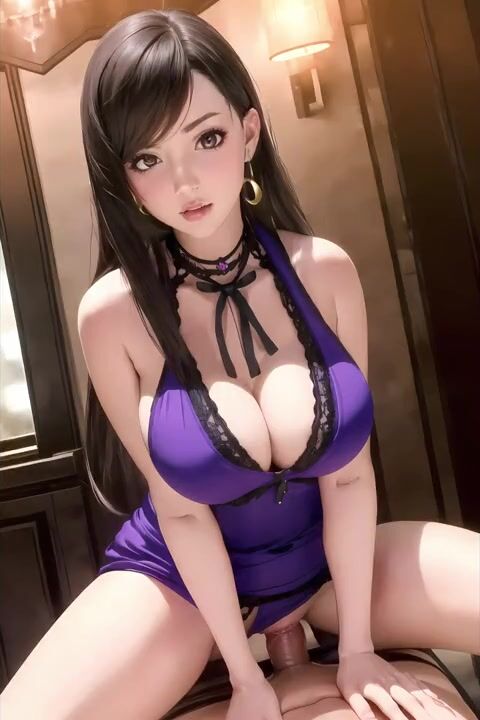 tifa getting fucked in her purple "refined dress" and getting plastered with cum
