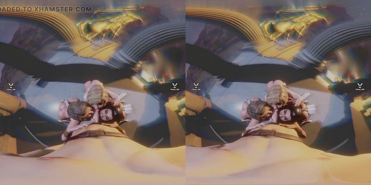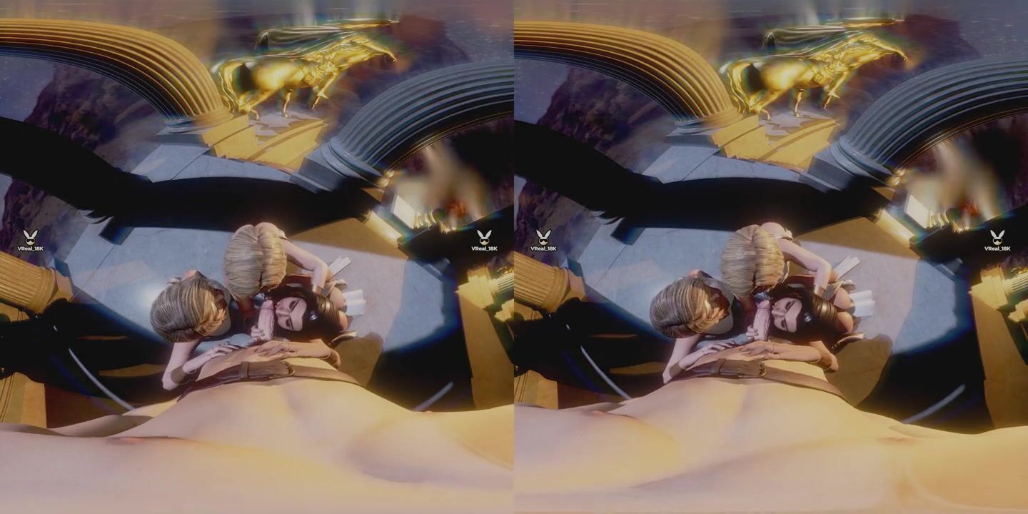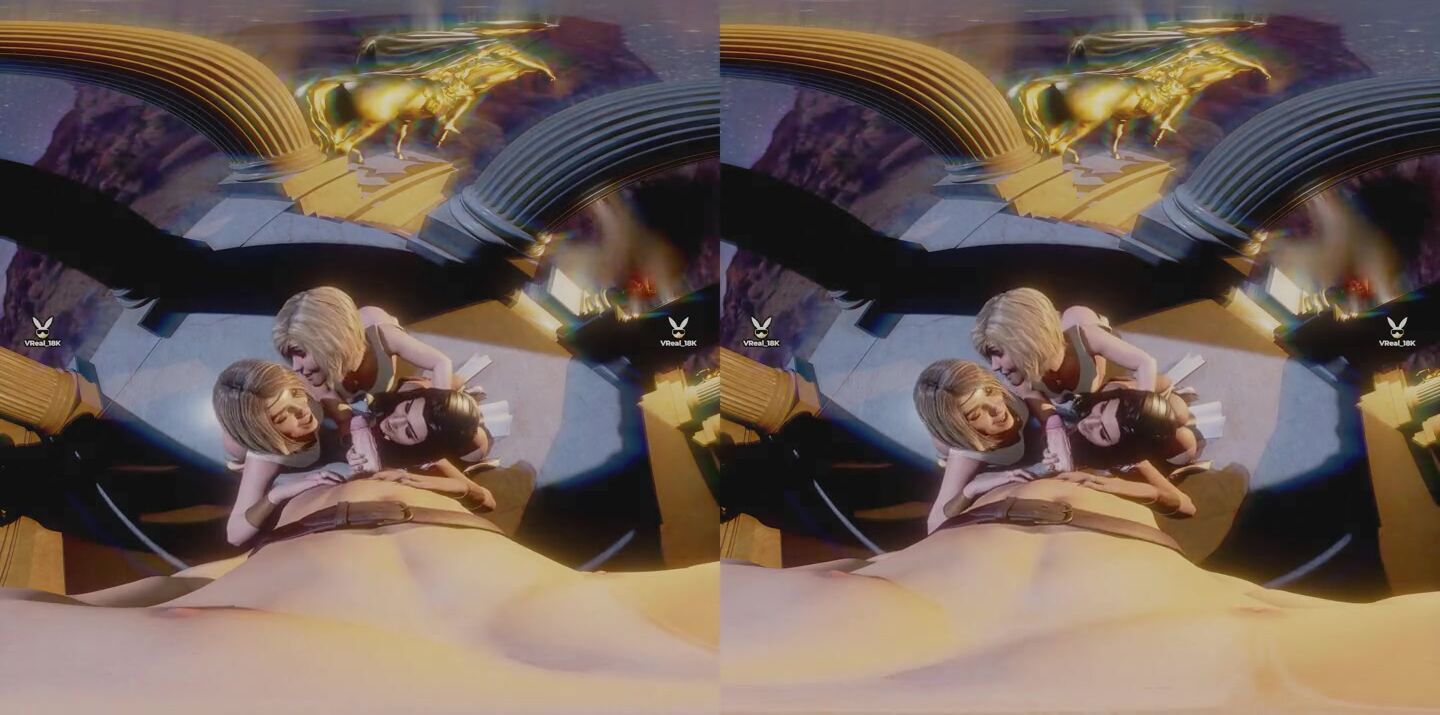 Worship Goddesses - triple blowjob in a classic temple featuring amazon version of Super Girl, Powergirl and Wonder Woman